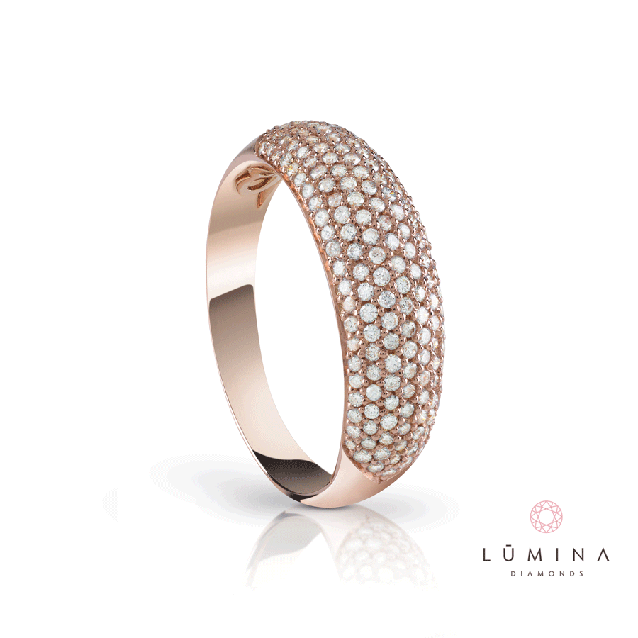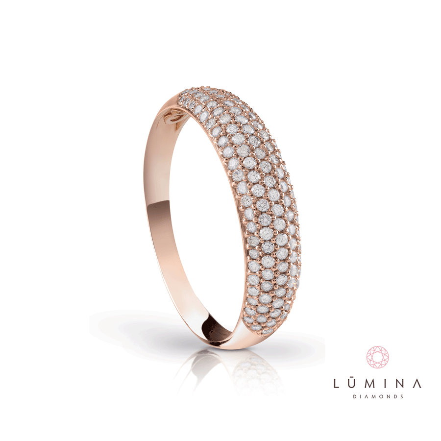 Anello veretta in oro rosa con pavé di diamanti