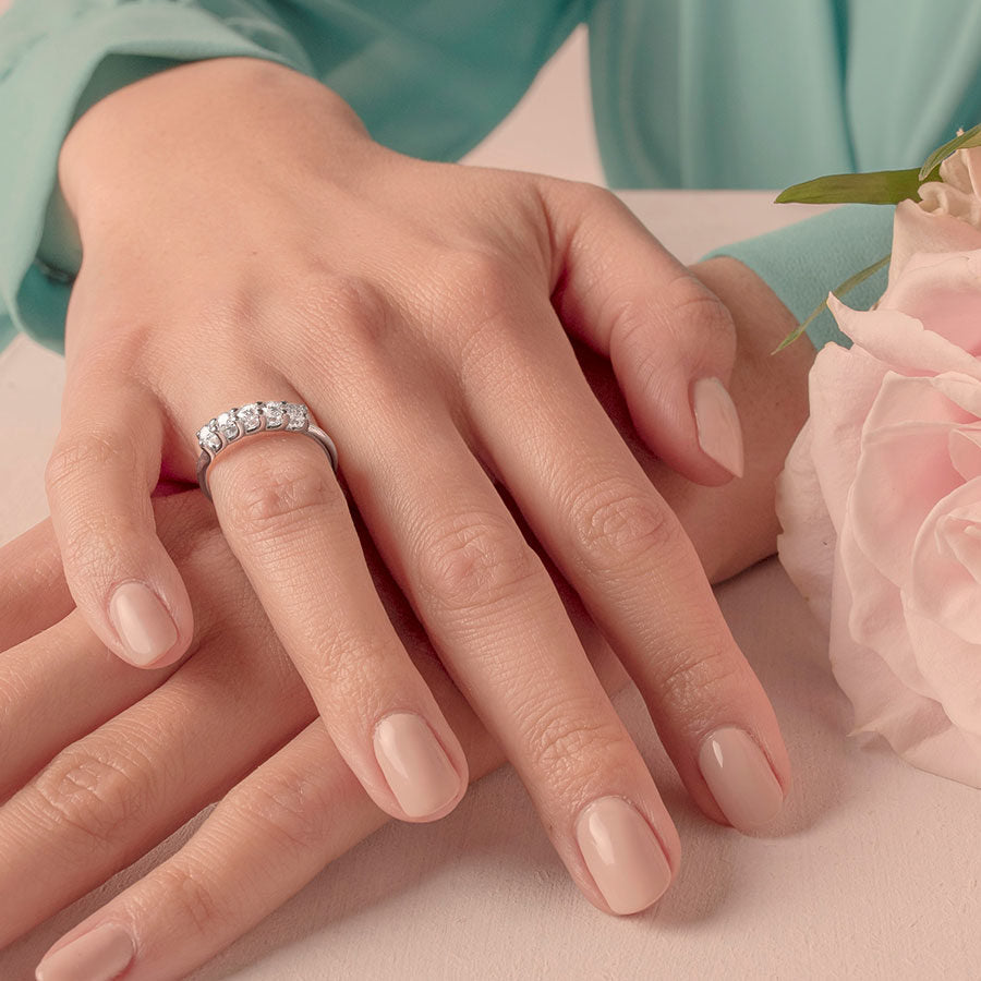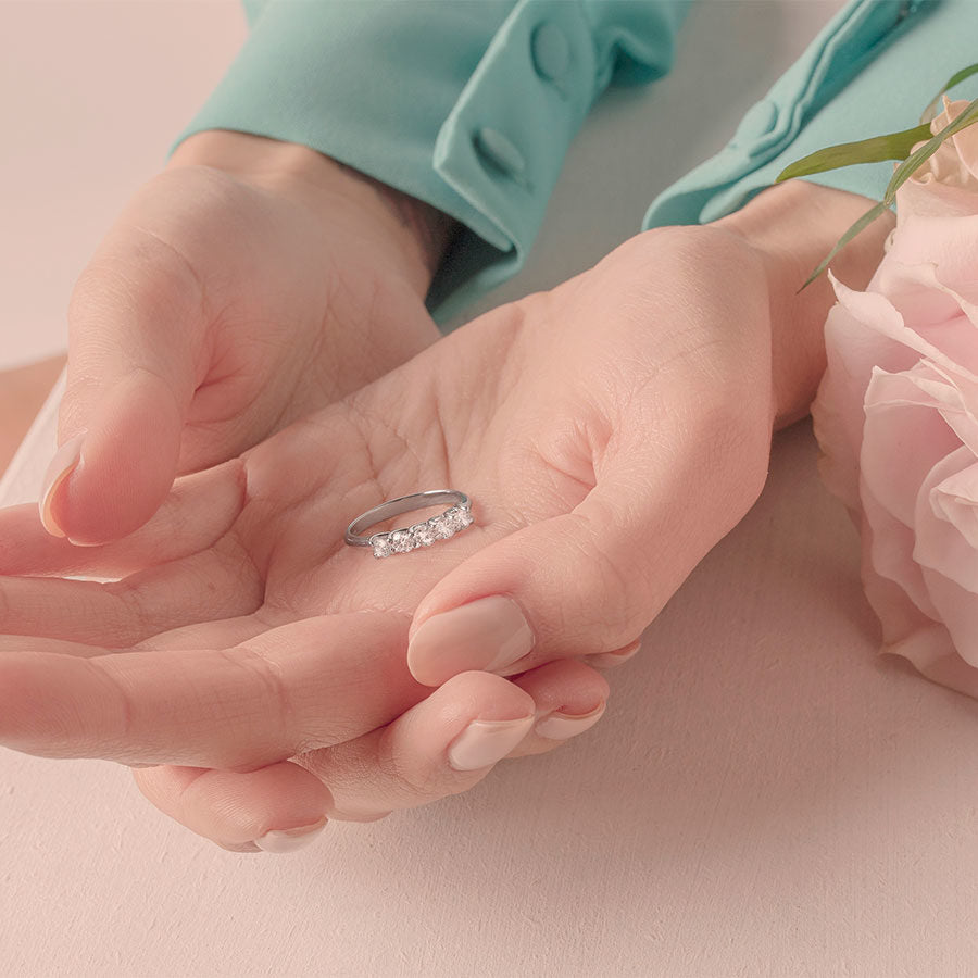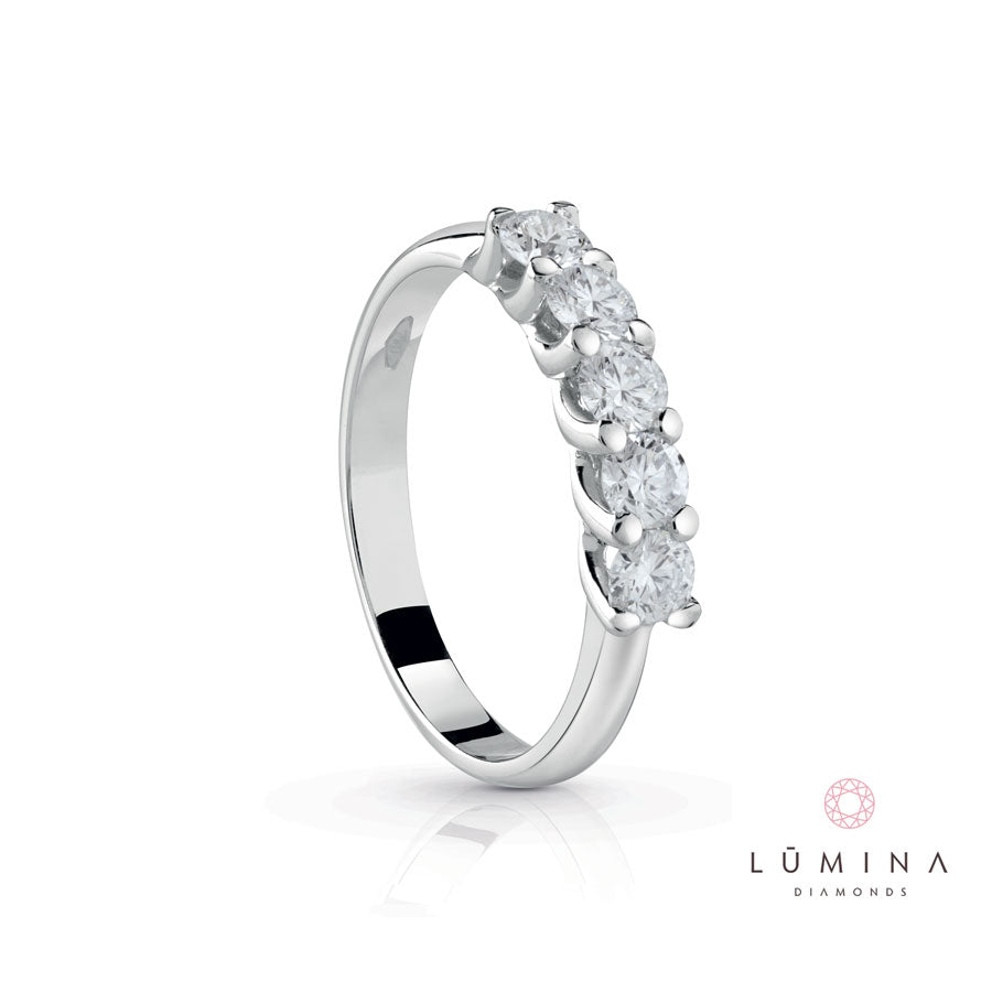 Anello Veretta 5 diamanti con cestino ad abbraccio