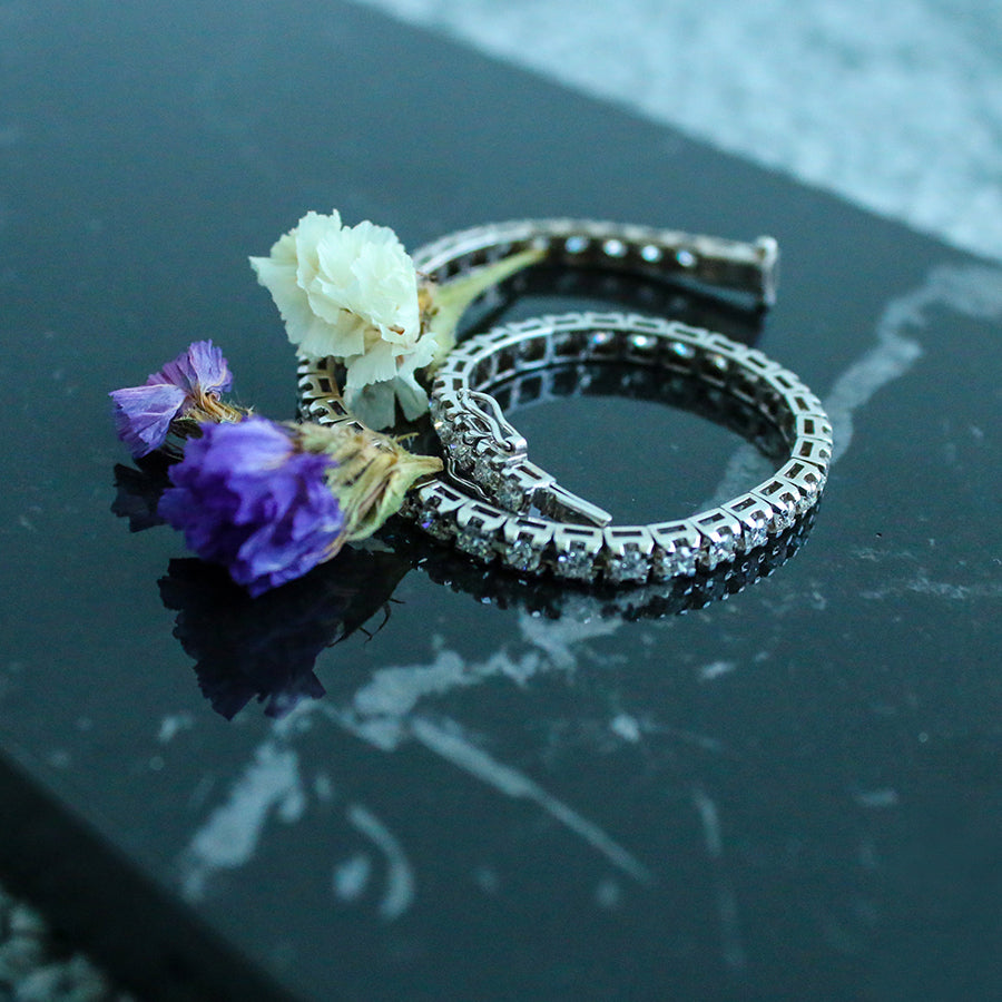 Bracciale Tennis con cestino a punta e diamanti