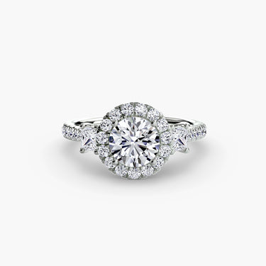 Nota: il numero e la caratura delle pietre laterali si basano su una pietra centrale round da 1,5 ct e possono variare a seconda delle dimensioni effettive della pietra centrale selezionata; colore e purezza dei diamanti laterali saranno calibrati in funzione della pietra centrale.