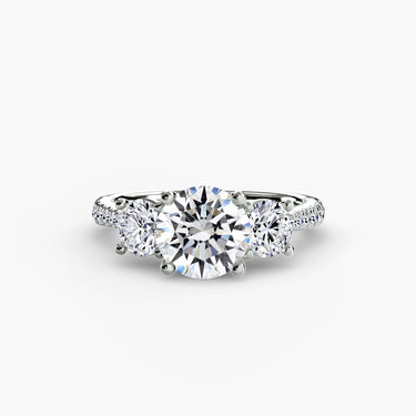 Nota: il numero e la caratura delle pietre laterali si basano su una pietra centrale round da 1,5 ct e possono variare a seconda delle dimensioni effettive della pietra centrale selezionata; colore e purezza dei diamanti laterali saranno calibrati in funzione della pietra centrale.