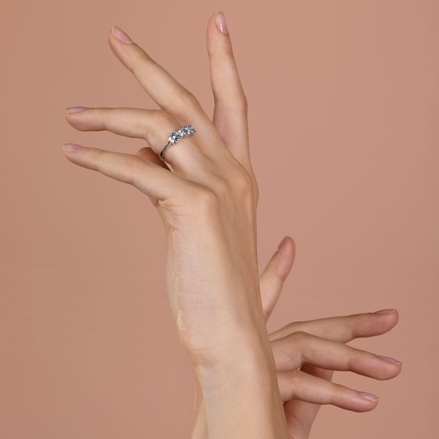 Anello Trilogy con acquemarine ovali e diamanti