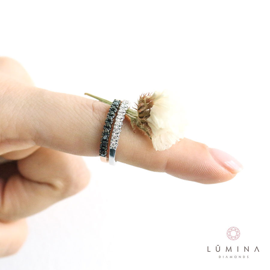 Anello Veretta semi eternèe in oro rosa con diamanti neri