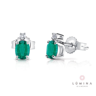 Orecchini con coppia di smeraldi ovali e coppia di diamanti