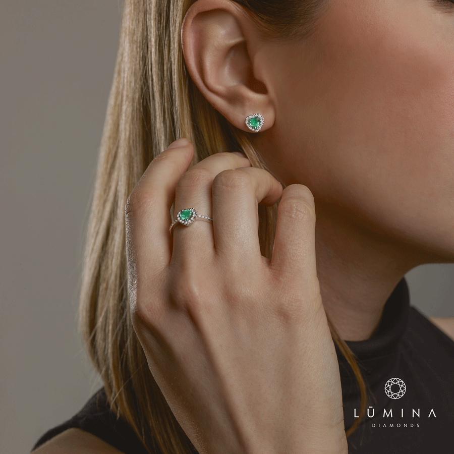 Anello con smeraldo cuore e contorno di diamanti