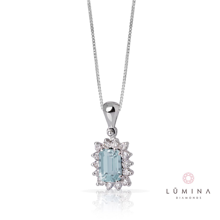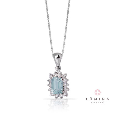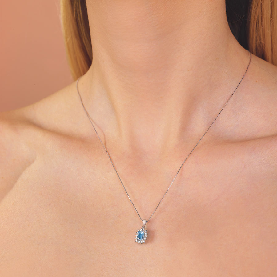 Collana con acquamarina ottagonale e contorno di diamanti