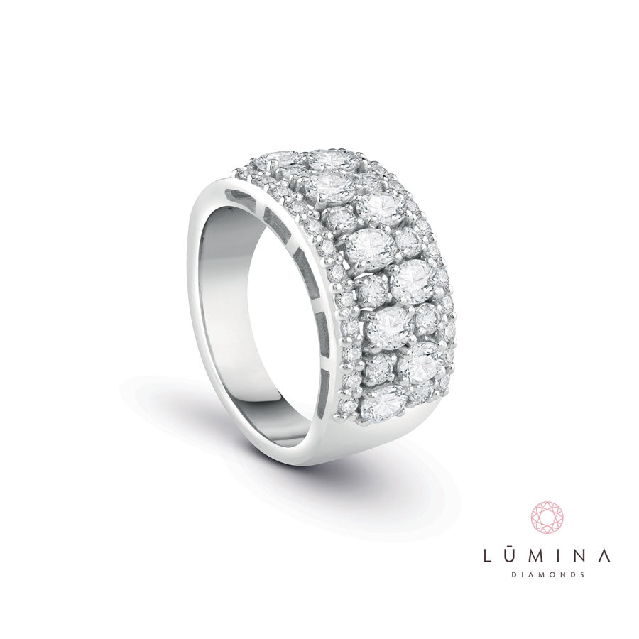 Anello Fascia con diamanti ovali e round